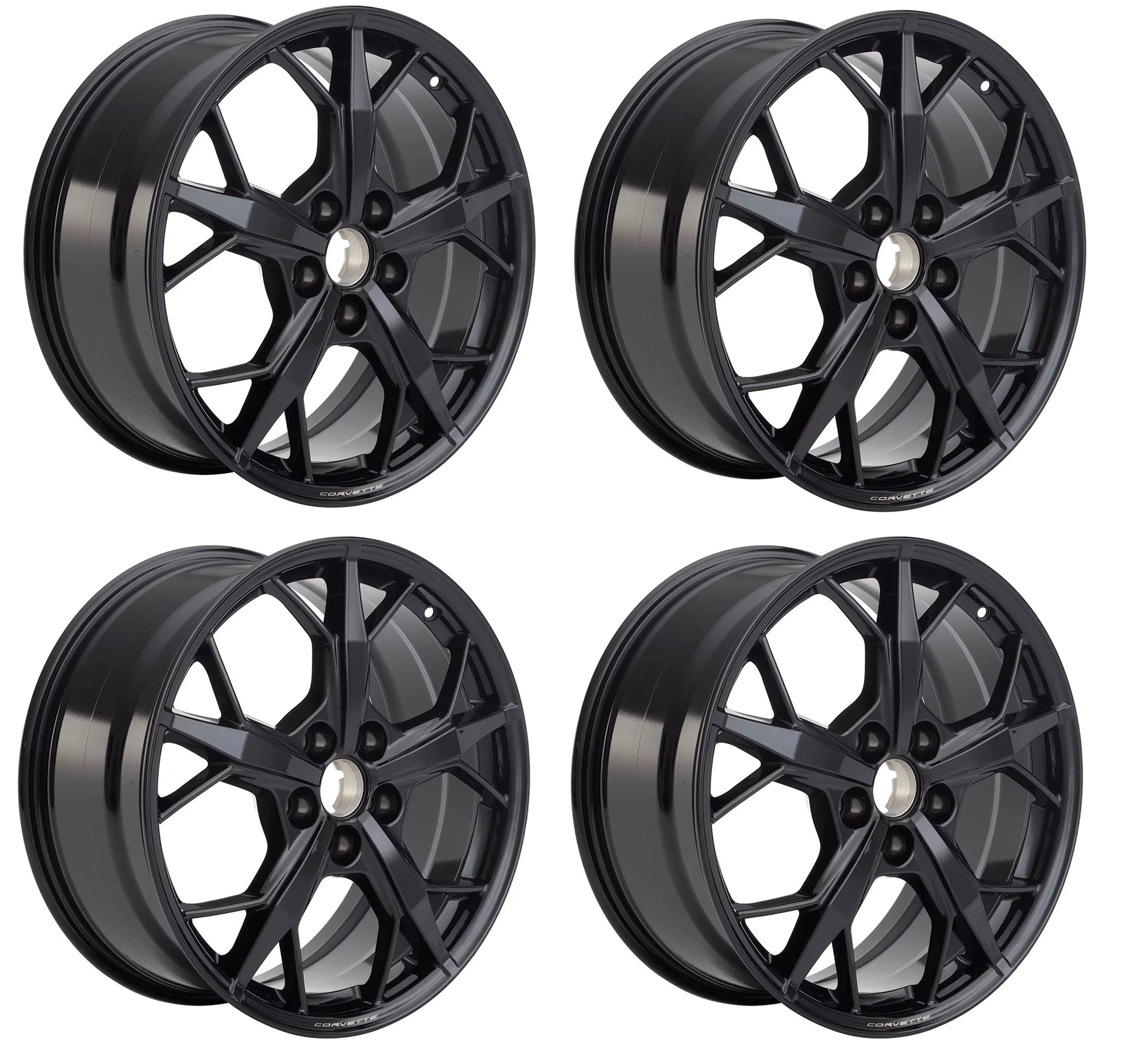 2020-2025 Chevy Corvette C8 Trident Gloss Black Wheel Set OEM GM